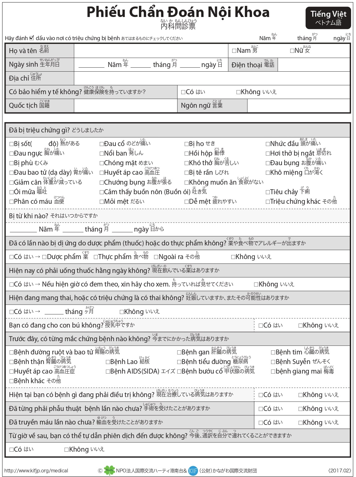 (サンプル)多言語医療問診票/ベトナム語 [JPGファイル/536KB]